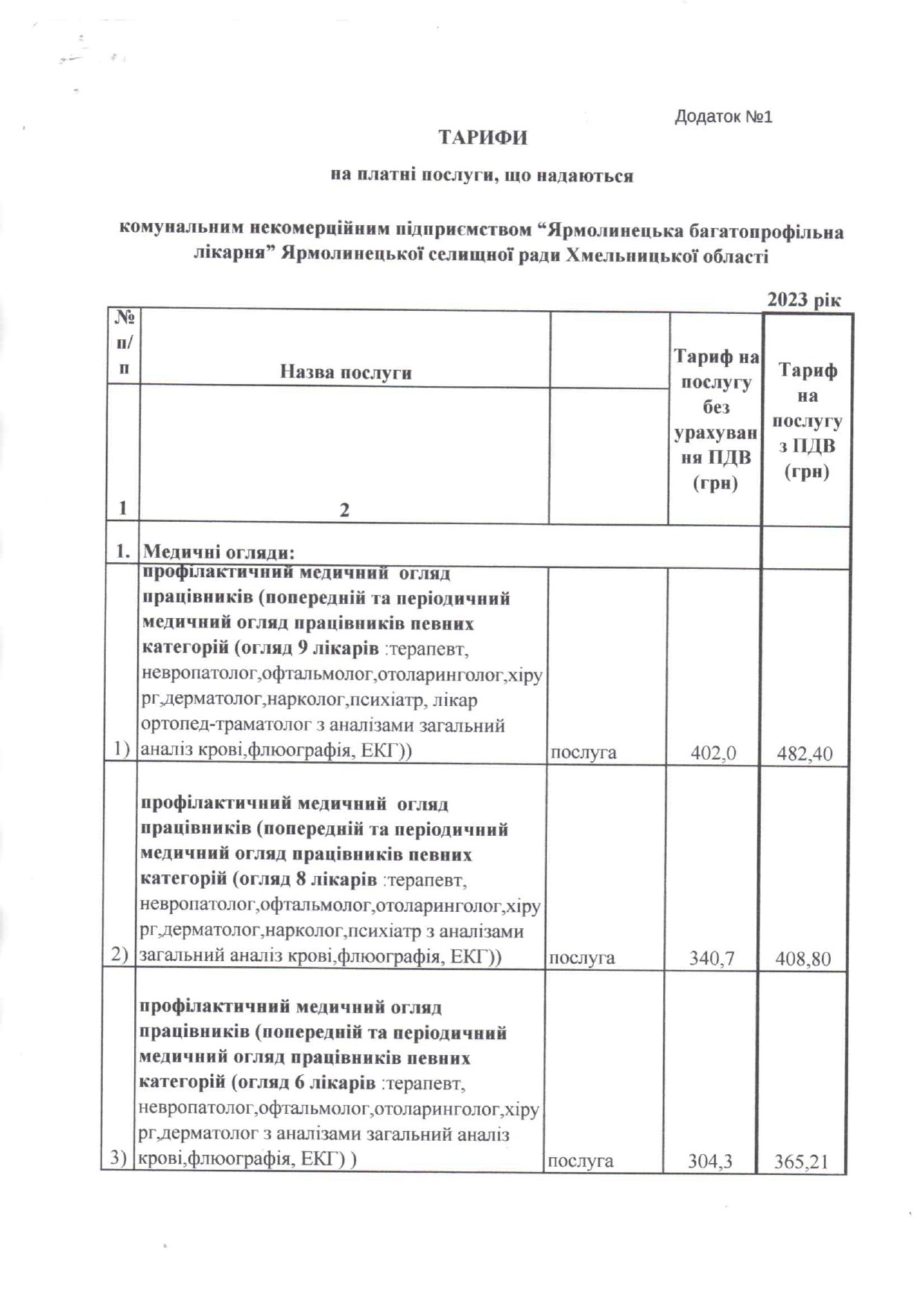 Платні медичні послугиНаказ №88 від 03.03.2025 Про внесення змін Рішення Про встановлення тарифів на платні медичні послуги, які надаються поліклінічним відділенням КНП “Ярмолинецька багатопрофільна лікарня”Публічний договір про надання послуг з медичного обслуговування за платуРішення №2 від 07.03.2023 Про встановлення тарифів на платні послуги, що надаються поліклінічним та стоматологічним відділенням комунальним некомерційним підприємством “Ярмолинецька багатопрофільна лікарня” Додаток 1 ТАРИФИ на платні послуги, що надаються комунальним некомерційним підприємством “Ярмолинецька багатопрофільна лікарня” Ярмолинецької селищної ради Хмельницької області 2023 рікdodatok-1-taryfy-na-platni-posluhy_page-0001dodatok-1-taryfy-na-platni-posluhy_page-0002dodatok-1-taryfy-na-platni-posluhy_page-0003dodatok-1-taryfy-na-platni-posluhy_page-0004dodatok-1-taryfy-na-platni-posluhy_page-0005dodatok-1-taryfy-na-platni-posluhy_page-0006dodatok-1-taryfy-na-platni-posluhy_page-0007dodatok-1-taryfy-na-platni-posluhy_page-0008dodatok-1-taryfy-na-platni-posluhy_page-0009